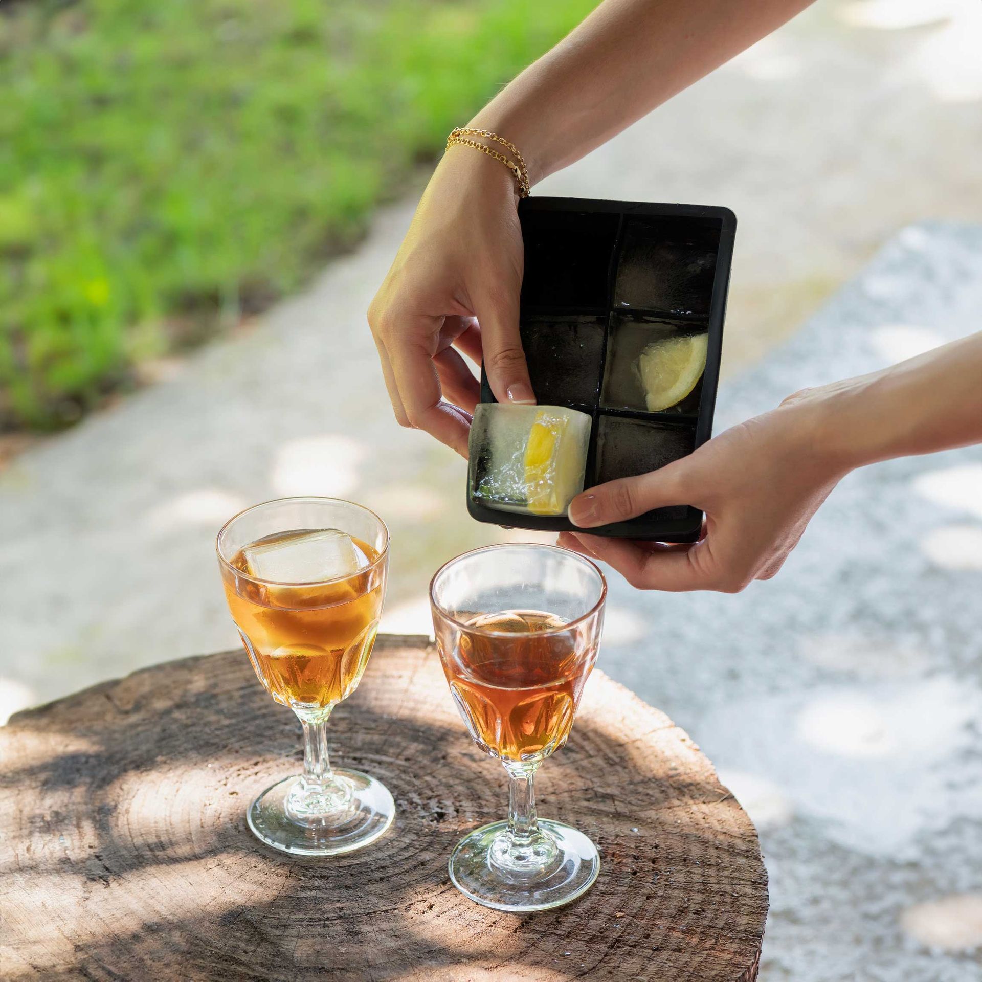 Esta bandeja de hielo de silicona flexible produce cubos de hielo grandes de 5×5 cm, ideales para mantener tus bebidas, whisky o gin tonic fríos por más tiempo, diluyendo menos el cóctel en comparación con los cubos de hielo convencionales. Utiliza la bandeja para añadir un toque especial a tus cócteles y experimenta con cubos de hielo llenos de frutas, hierbas o color.