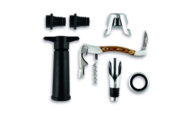 El set cuenta con una bomba de vacío para vino y dos tapones, lo que le permite volver a sellar una botella abierta mientras la bomba extrae el aire para preservar el sabor y color del vino.