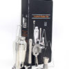 Este compacto set de bar de acero inoxidable incluye las herramientas esenciales para mezclar cócteles profesionales en casa. El set cuenta con una coctelera, colador, cuchara de bar para mezclar, mortero para triturar ingredientes, pinzas para hielo, un medidor doble (25/50 ml), un colador Hawthorne para filtrar y un abrebotellas.