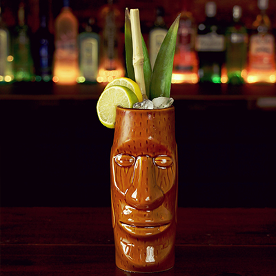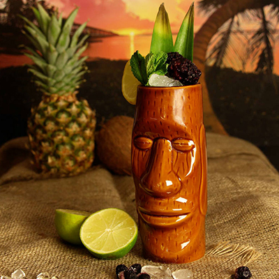 Una taza de cerámica esmaltada a mano con un diseño inspirado en las icónicas estatuas Moai de la Isla de Pascua. El esmalte marrón cálido y los detalles tallados le otorgan un aspecto clásico y minimalista, convirtiéndola en una excelente opción para servir cócteles tropicales de tamaño medio.