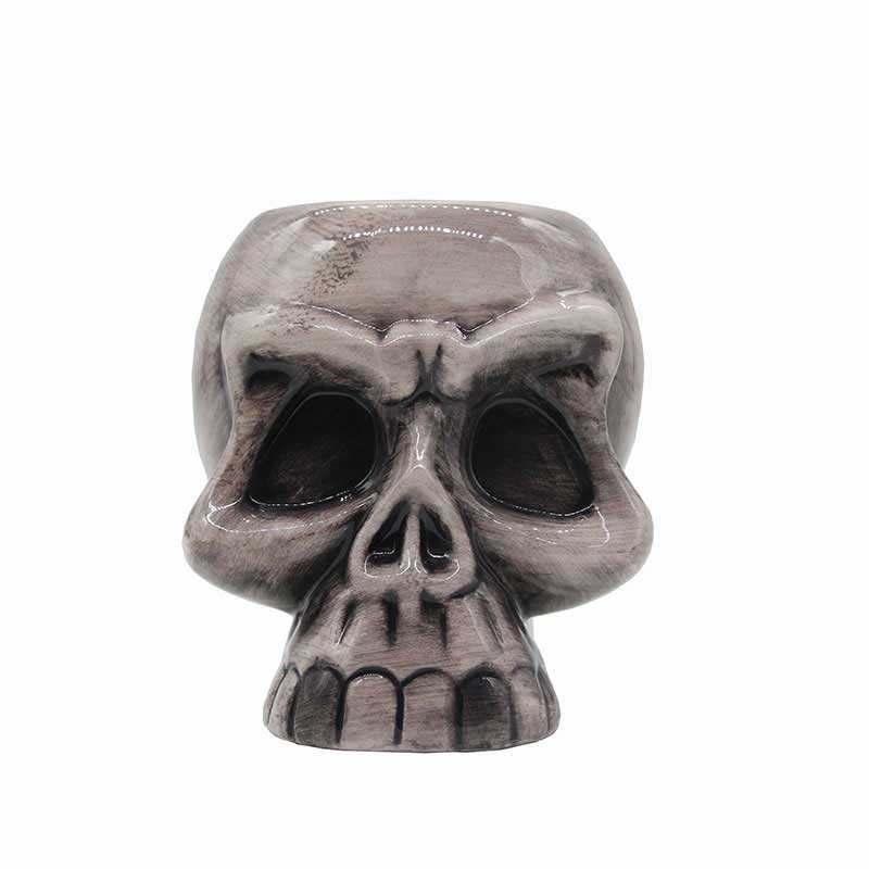 Abraza el lado oscuro del tiki con la Tiki Skull Mug. Elaborada en cerámica esmaltada a mano, esta impactante taza con forma de calavera presenta ojos huecos profundos y detalles óseos realistas en un acabado gris ahumado. Con una capacidad de 70 cl, es perfecta para servir cócteles audaces y dramáticos que dejan una impresión inolvidable.