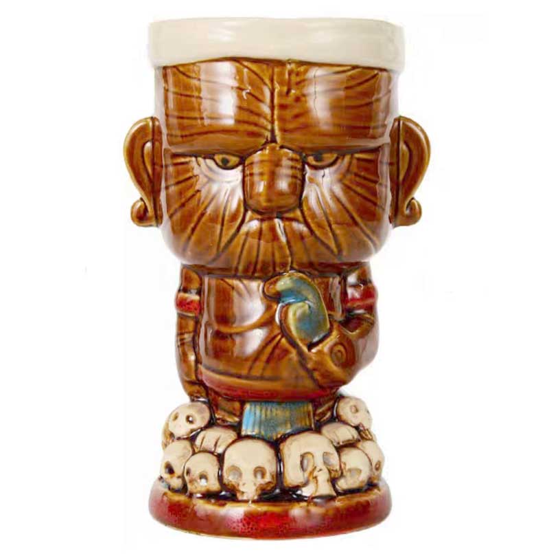 Añade un toque de misterio a tu colección tiki con la Tiki Skull Boy Mug. Con un diseño de cerámica esmaltada a mano, esta taza presenta una figura tiki sabia y envejecida sobre una base de calaveras esculpidas con intrincado detalle. El esmalte marrón oscuro, combinado con detalles tallados expresivos, crea un aspecto audaz y llamativo, perfecto para servir cócteles tiki deliciosos y con un toque inquietante.